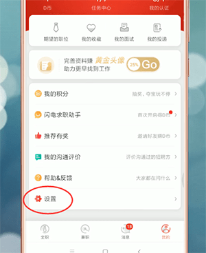 点击我的页面【设置】进入设置页面
