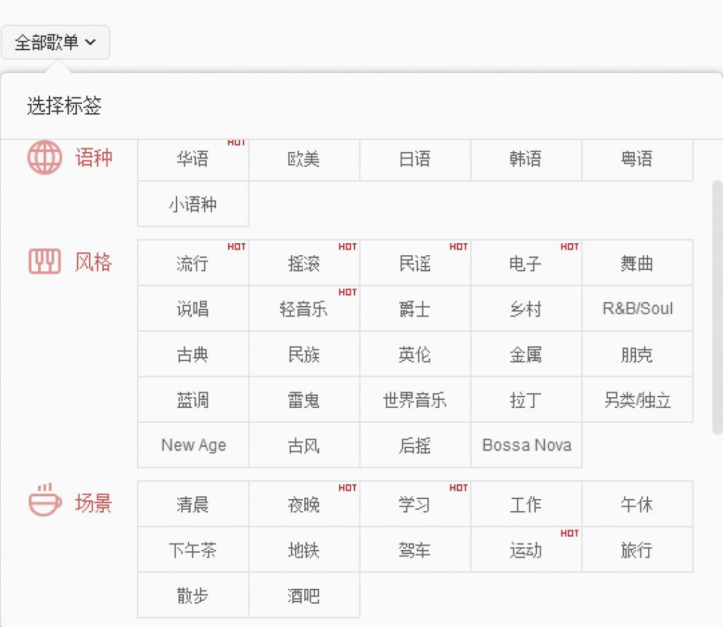 如何为多个片段选择合适的BGM作为点缀?建议摄影师在拍摄前可以根据内容大致确定音乐风格,这对中期拍摄和后期剪辑都有帮助。例如,“网易云音乐”中的播放列表有“风格”、“场景”、“语言”等多种分类主题。用户可以根据视频内容搜索音乐。