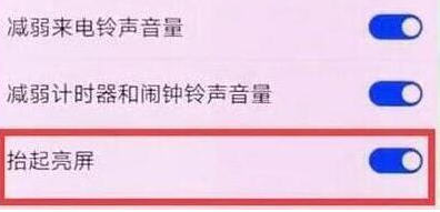 第五步:我们点击【升降亮屏】的开关,开启该功能。当手机黑屏时,拿起手机即可点亮屏幕。到