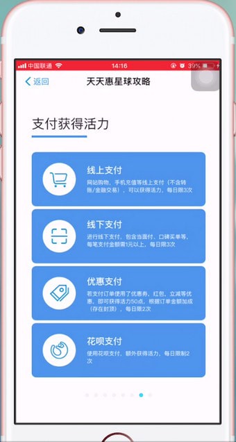 1.我们可以通过商业活动(支付宝支付、缴费、骑行等)、主线任务/日常任务、帮助好友捕捉精灵、打开宝箱、探索其他星球的飞船等方式获得活力点。活力点是天天会星球的主要价值。资源。可以用来升级生命力树,建造和升级城堡、码头、宝库,购买道具,补充探索飞船中的精灵,从而增加星球的价值。