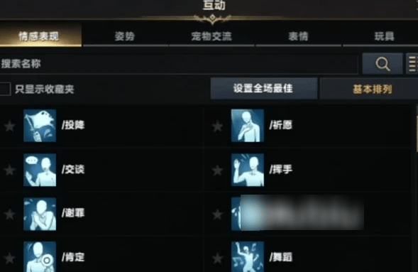 在菜单中,我们可以看到情绪表达、姿势、宠物交流、表情、玩具等选项。