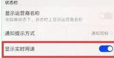 步骤3:点击打开【显示实时网速】开关,即可在状态栏查看网速。到