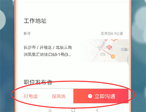 如果合适,您可以选择屏幕底部的三种方式联系雇主