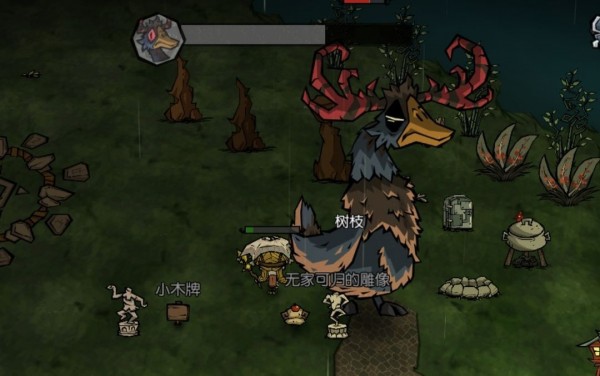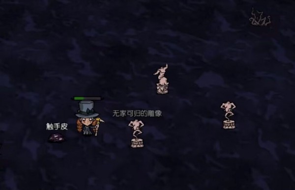 下雨天会在三个雕塑里生成一个变异触手(我敲的是大雕塑,下面补一下)