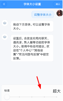 3、通过字体大小设置页面底部的进度条,我们可以滑动放大默认字体,这样视力不好的朋友就可以正常使用软件了。