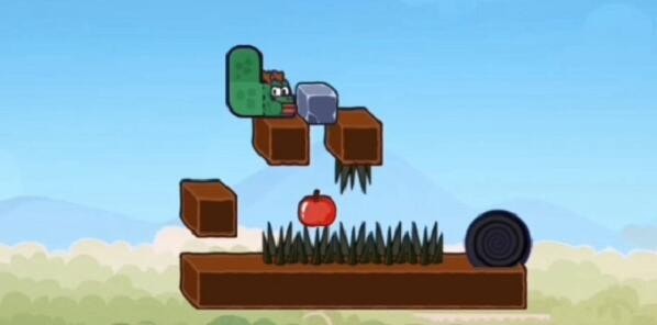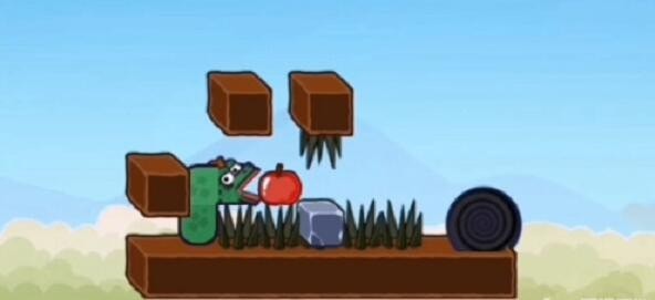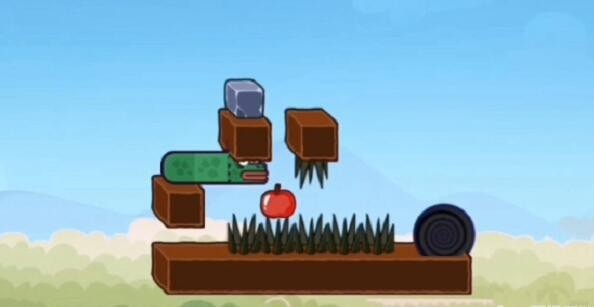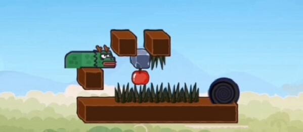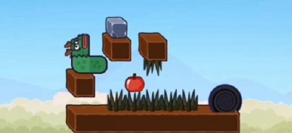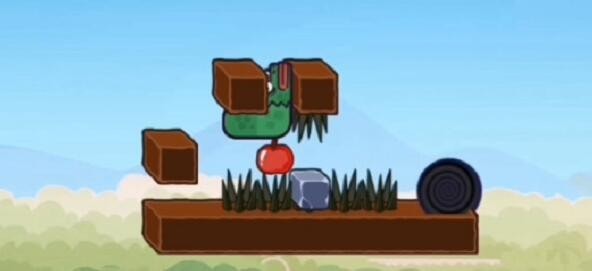 4.石头落下后,它来到左边的石头,把苹果上的石头推到前面。
