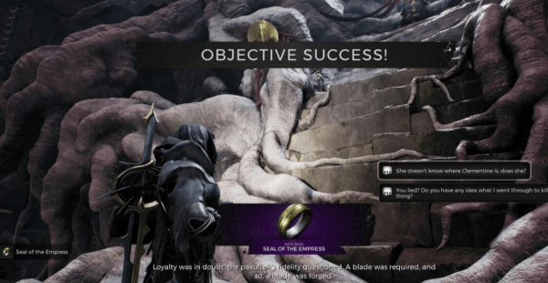4.稍后会有对话。对话中选择【陛下,丑已被压制】& rarr【女王万岁】& rarr【跪求】,你会得到一枚戒指【女王印记】。