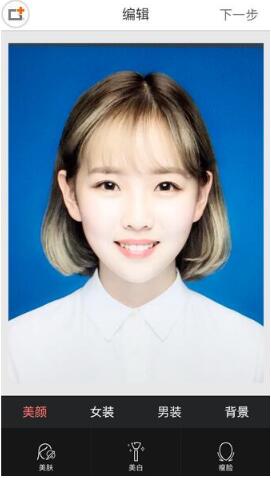 在最美证件照软件中,您可以对自己拍摄的照片进行处理,如美颜、美肤、美白、瘦脸、换衣服、换背景等。处理完后,您可以继续下一步!
