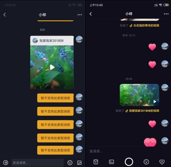 好友聊天界面右下角有一个小爱心。这个小心脏还隐藏着一个小秘密,那就是直接点击它会发送一个“?”的表情符号,而按住心脏号码则会发送一个更大的跳动的心脏。表达。不过,目前抖音不支持这个心形表情。