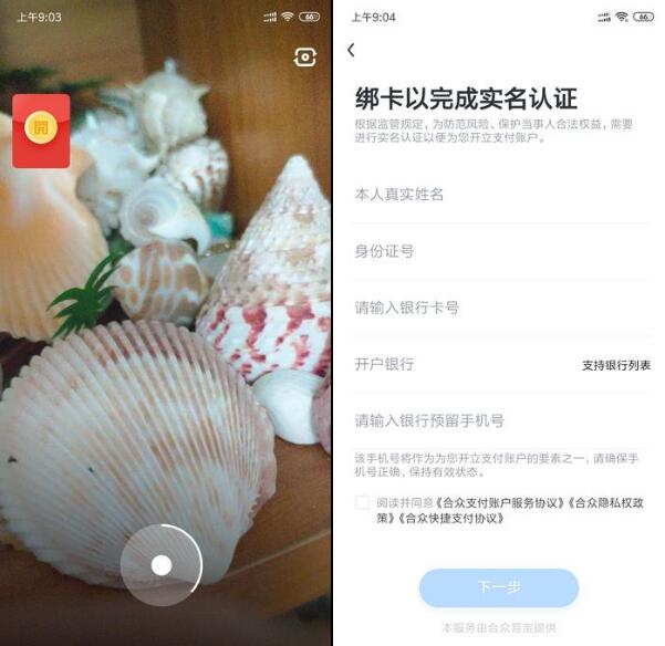 图7 将红包包裹到视频中图8 多闪钱包绑定银行卡操作
