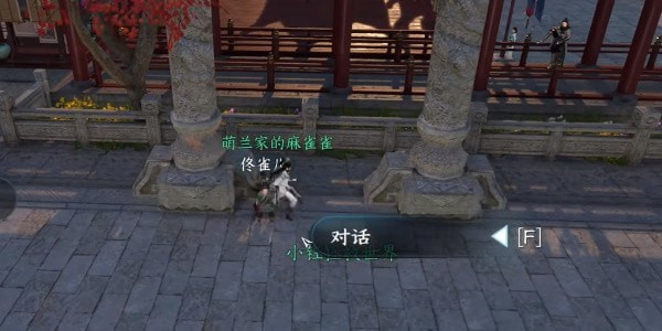 1.首先需要来到上面提到的汴京虹桥位置。来了之后,我们可以看到两个柱子下面的鸟。我们需要用开心鼓掌的动作来触发冒险任务。