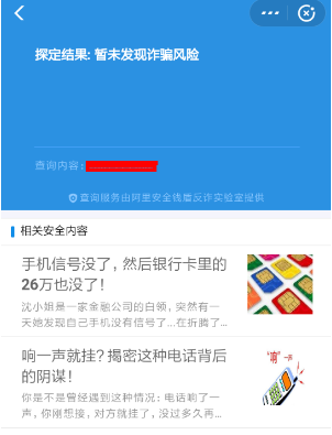3.以我的手机号码为例。如果手机号码没有问题,调查结果是不存在诈骗风险。有需要的朋友可以尝试一下!