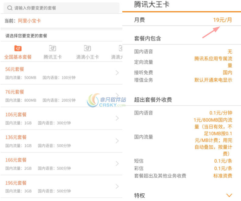 之后你可以看到一系列的互联网套餐可供选择,比如腾讯的大王卡、阿里巴巴的宝卡、百度的大神卡、京东的强卡、微博的V卡等等,你可以根据自己的需求进行选择,然后点击提交。需要注意的是,套餐变更成功后,之前的套餐和每月数据将失效,无法转入下个月。