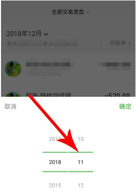 3、另外,点击底部的弹窗选择2018年的具体月份,我们就可以查看详细的收入和支出数据,非常方便快捷!