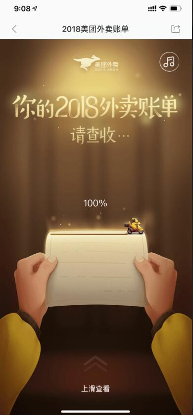 点击进入,向上滑动即可开始查看你的2018年外卖账单。