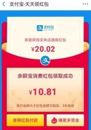 3、红包抵扣使用中,普通红包优先于余额宝消费红包抵扣;