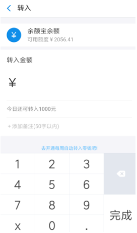 3、每天最多可转账1000元,或通过底部选项开通“每周自动转账找零”服务。有兴趣的朋友可以尝试一下。