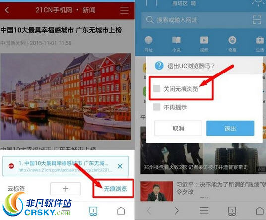 这需要每次退出UC。有没有更简单的方法来一劳永逸地清除“浏览历史记录”?那就是UC浏览器的“隐身浏览”功能。如果您开启此功能,您浏览的任何网页都不会被记录。