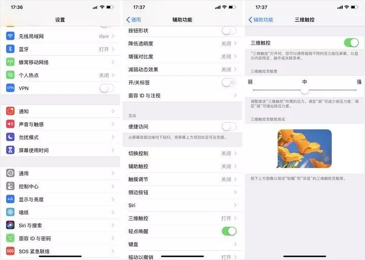 正因为iPhone XR没有3D Touch,所以在手机的设置中找不到3D Touch(三维触控)的设置选项。