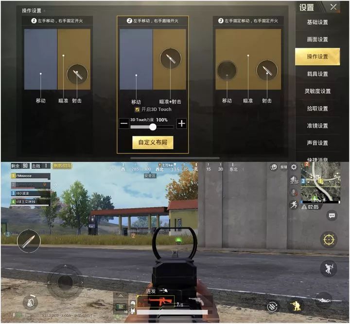由于支持3D Touch 的手游不多,而长时间按压硬屏来实现线性控制(比如控制赛车油门)往往会导致拇指酸痛,体验不佳,所以3D Touch 玩法在游戏辅助中发挥着重要作用。该应用程序更多地基于类似“宏”的效果来辅助玩家。比如《绝地求生:刺激战场》中,通过用力按压屏幕触发3D Touch,实现瞄准+射击的两步操作。