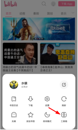 2. 单击网页右下角的横条按钮,然后在弹出的菜单列表中选择“工具箱”功能,对网页进行翻译。