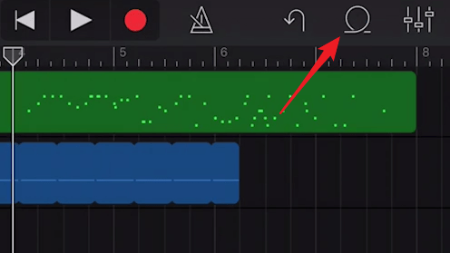 3. 点击iPhone 上GarageBand 上的“曲目视图”按钮,打开“曲目”视图;