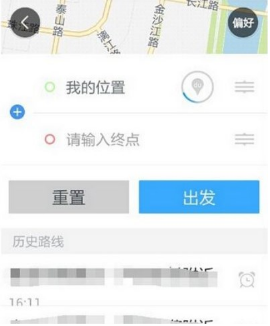 2. 地图模式下,导航会自动为用户定位当前位置。单击下面工具栏中的“路线”。