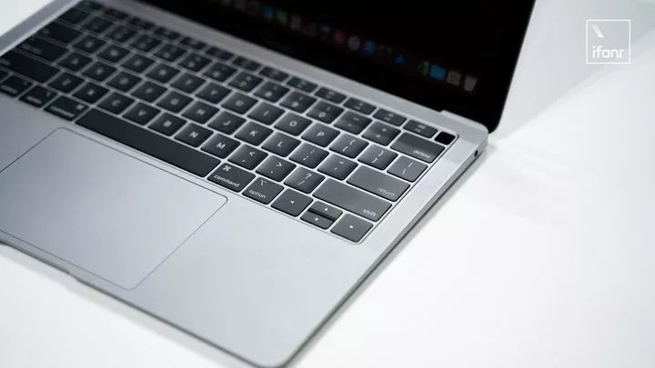 由于没有TouchBar,且扬声器布置在键盘两侧,因此新款MacBook Air 的C 面看起来有点像7 月份未更新的MacBook Pro 的非TouchBar 版本。