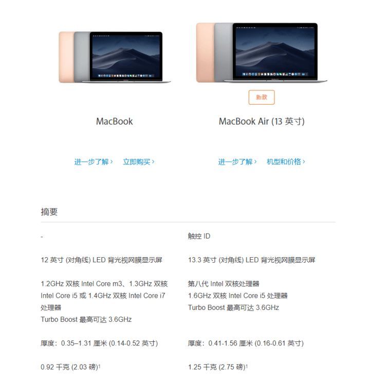 新款MacBook Air(上)和MacBook Pro 2018(下)对比
