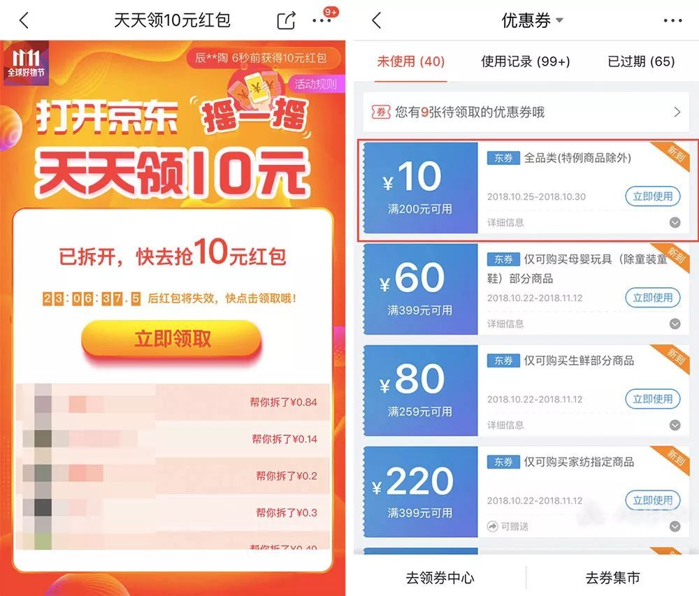 入口:打开京东APP(需升级到最新版本),摇一摇,出现活动界面。
