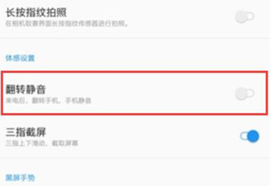 第三步:在动作手势界面找到【翻转静音】选项,打开后面的开关