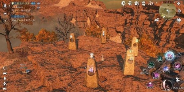首先,技能栏配有探索技能。对着一块石头随便使用后,每块石头上会出现相应的文字~