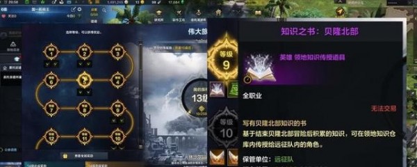 2.大旅程等级达到9级后,a & ldquo知识之书:北贝隆& rdquo英雄级领地知识传授道具;