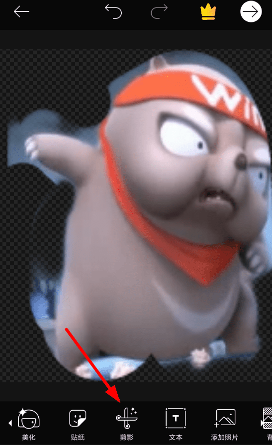 2、然后点击编辑页面底部的“剪影”功能,使用人像按钮成功识别出选中的人像部分,将其截取,并调整背景颜色。到