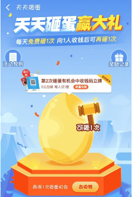 3、这样用户就可以点击屏幕上的金蛋开始砸蛋了。集齐一个人的钱后,还会有额外一次砸金蛋的机会。想要报销钱的朋友千万不要错过!