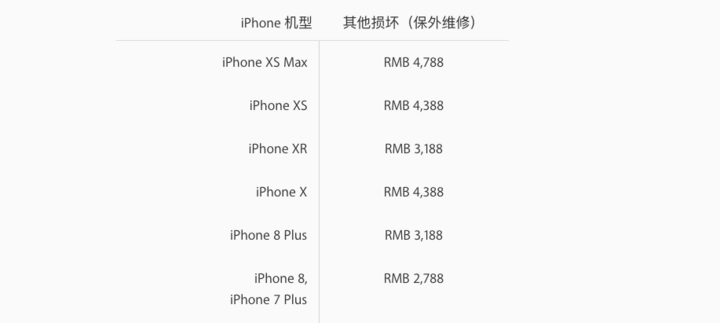 虽然iPhone XR的起售价比同样是双卡双待的iPhone XS Max便宜了3100元,但这并不意味着iPhone XR的官方维修费用会便宜很多。