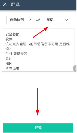 4、这样,我们选择要翻译的语言类型后,点击底部的按钮就可以成功翻译内容了,非常方便快捷!