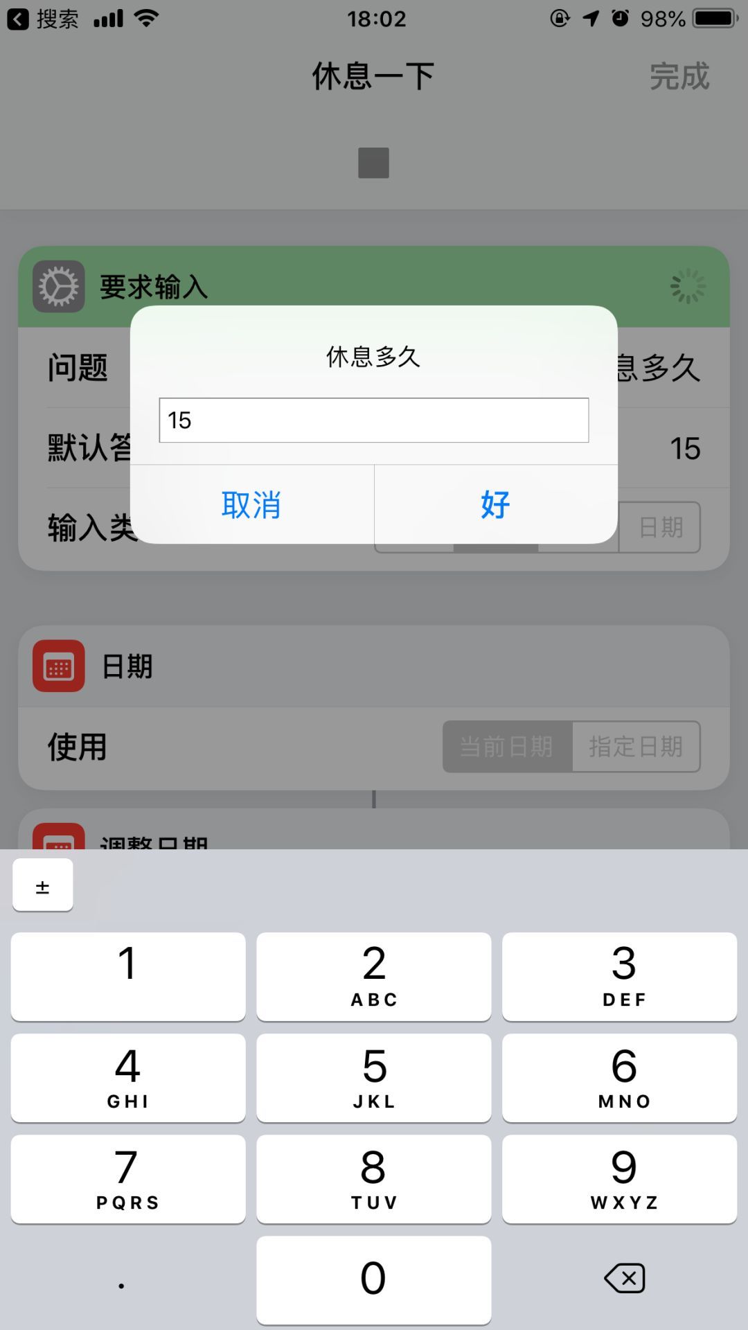 相信很多人都遇到过这种情况。这时,你不妨尝试使用这个“休息一下”的捷径。单击“运行”,快捷方式将要求您输入休息的持续时间。比如我选择了5分钟。那么快捷方式将是:
