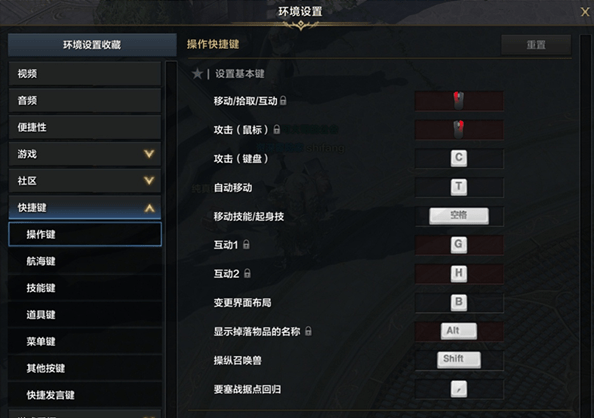 然后使用快捷键查看相关设置,在环境设置中找到技能键进行设置。