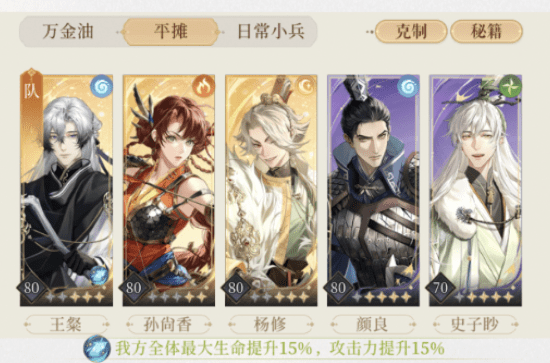 2.王允放大,王灿放大,阎良攻击,其他防御。