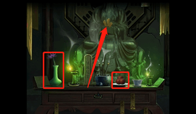 4.回到祠堂,把花插在左屏,苹果放在右盘。