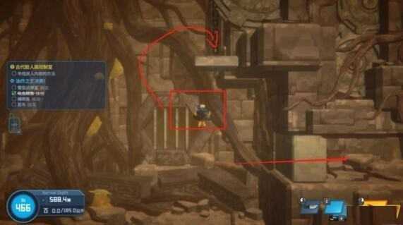 3.进入控制室,游到底。捡起甲虫,放在石板上。小心在甲虫爬下来之前进入石门。
