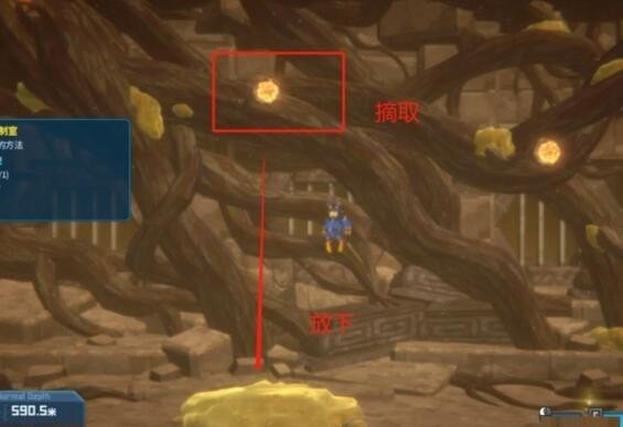 2.将采摘的简木果实直接扔在树脂上面。注意不要拿在手里太久,不然会爆炸。