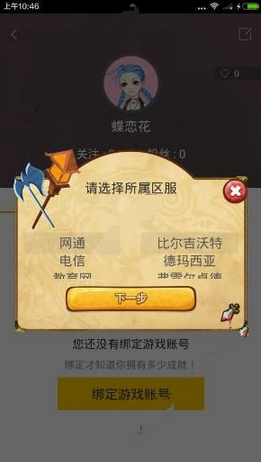 3.这里选择区域服务器,输入游戏名称,即可绑定账号英雄联盟查看结果~