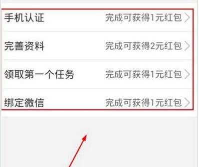 2、新手红包中,进行手机认证,填写信息,接收第一个任务并绑定微信即可获得对应的红包。