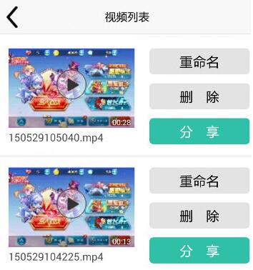 3. 只需再次单击“结束录制”即可结束本次录制。点击分享会进入视频列表,其中包含录制的视频。直接点击视频即可预览并播放,点击分享即可分享给朋友。