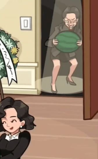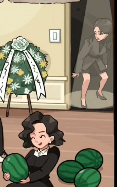 3.然后继续在图中观察,把西瓜放到一个半蹲着的女人手里。