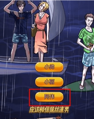 5.我们在后面弹出的选择框里选择阿伟,因为其他人都希望她死。