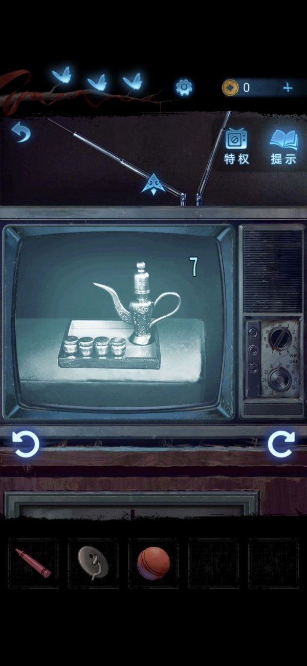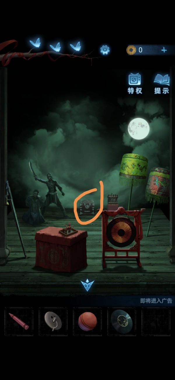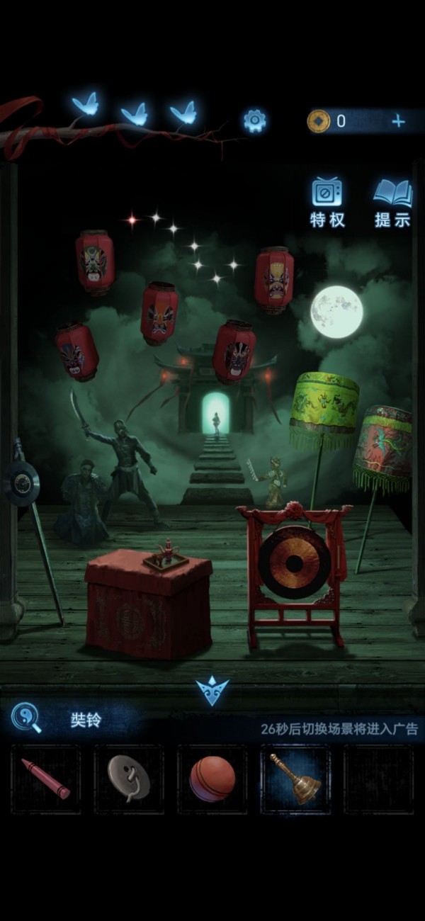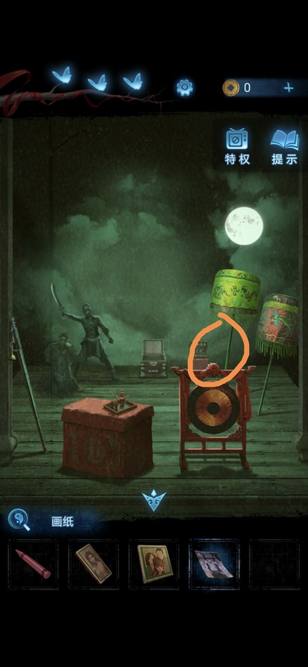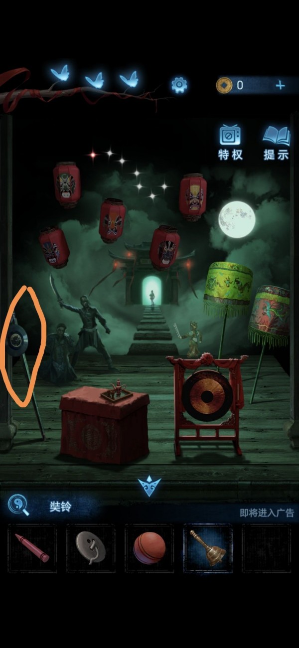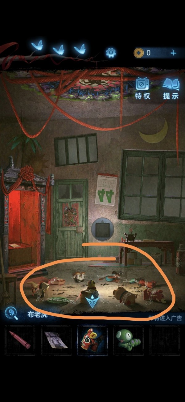点击中间的门来切换星星的数量。根据电视上刚刚出现的画面,画面右上角的数字是星星的数量。当达到相应的星数时,拨图中相应的东西,即一星拨钟,三星拨皮影戏,五星敲锣,六星拨伞,七星拨酒壶,直至五盏灯笼全部点亮。