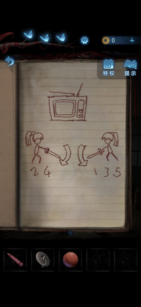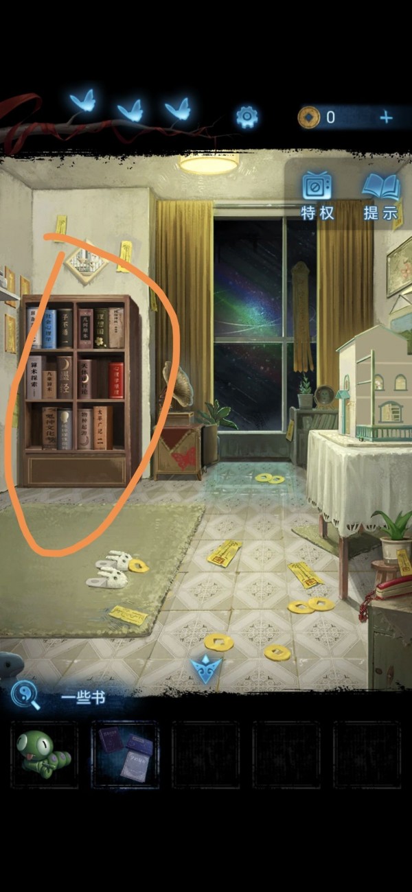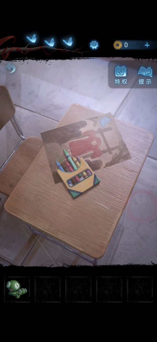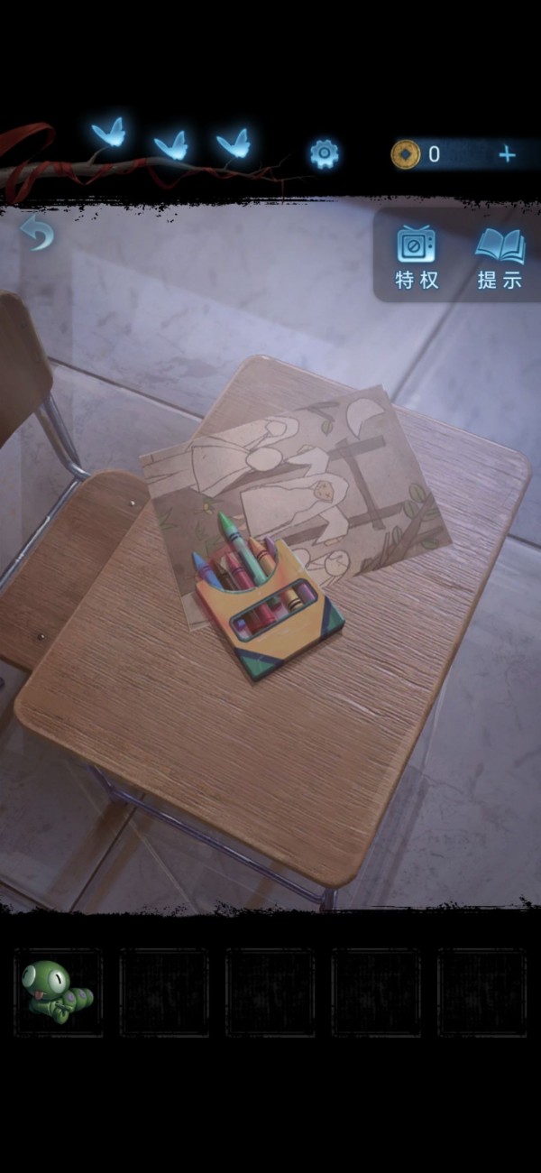 点开书桌,把画纸和蜡笔放在书桌上,玩一个小游戏,根据天平旁边柜子上的书填上颜色,做完就能拿到一些书。